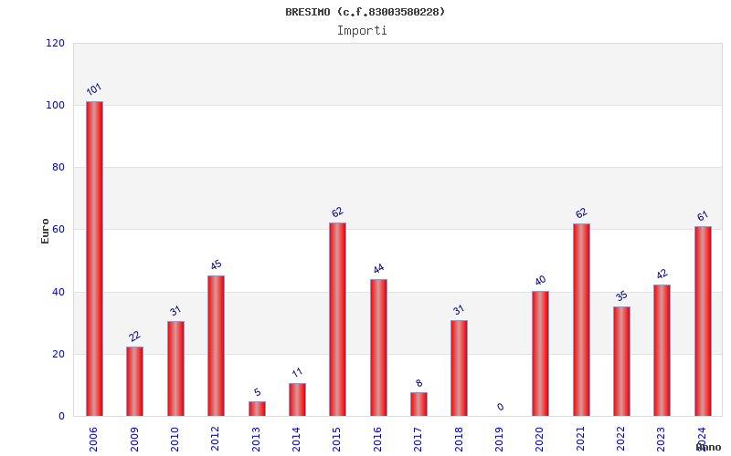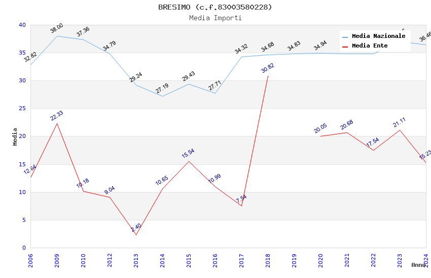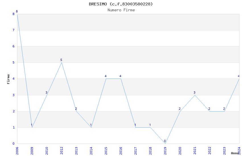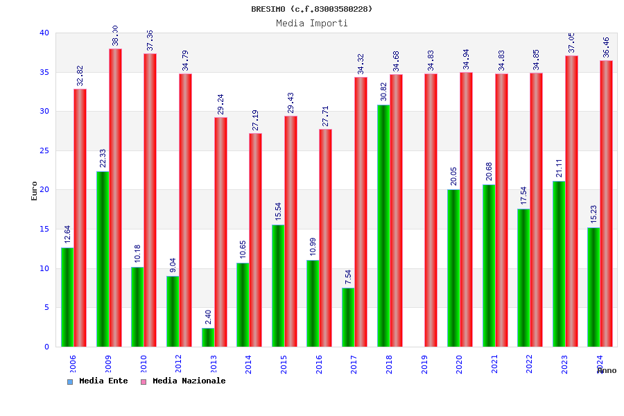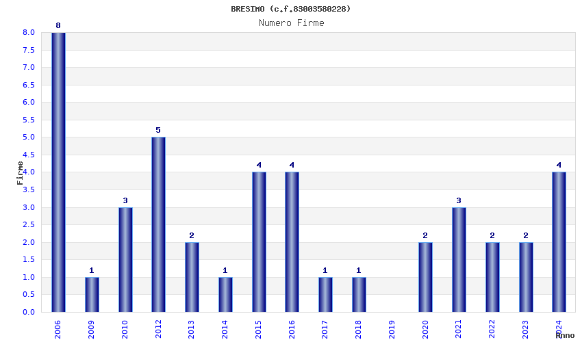 | Anno | Firme | Importi | Media | Naz. | Reg. | Prov. | Comu. |