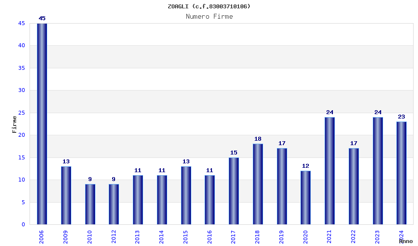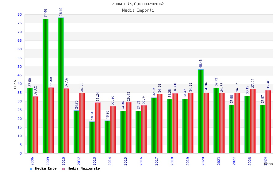 Anno Firme Importi Media Naz. Reg. Prov. Comu.