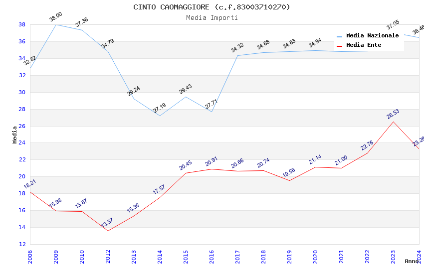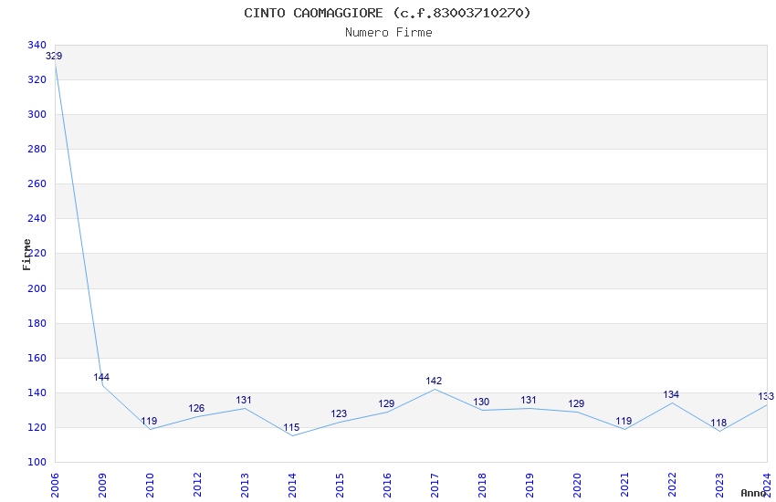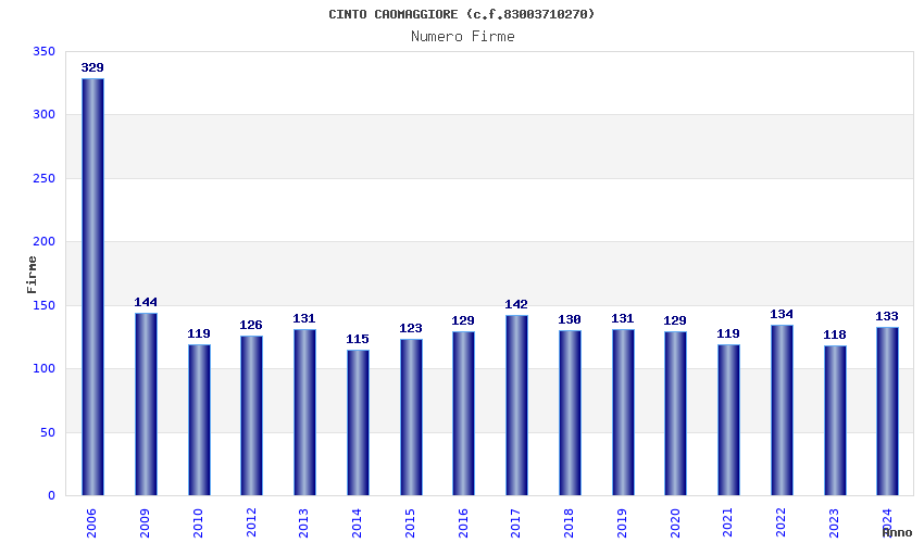 | Anno | Firme | Importi | Media | Naz. | Reg. | Prov. | Comu. |