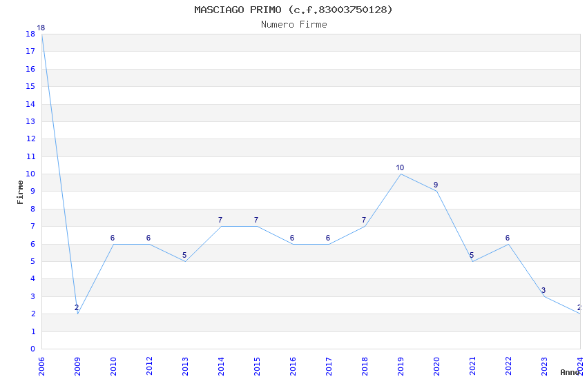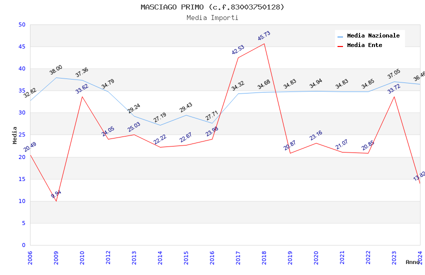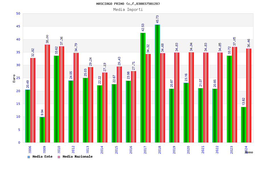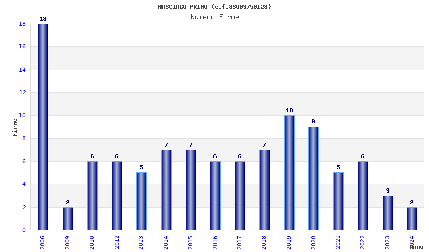 | Anno | Firme | Importi | Media | Naz. | Reg. | Prov. | Comu. |