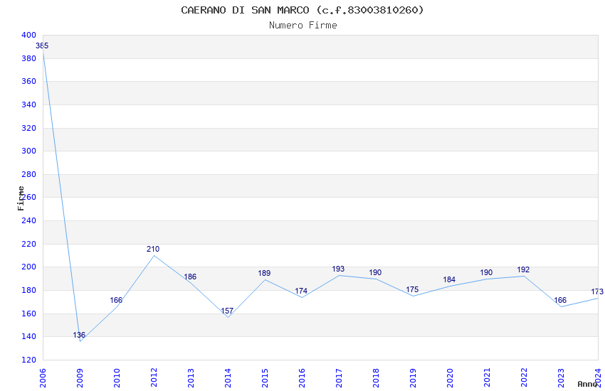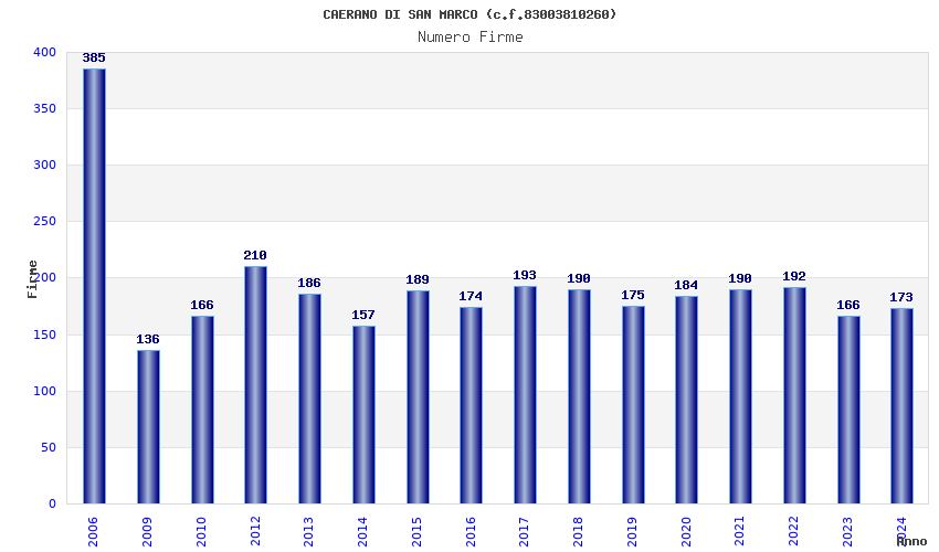 | Anno | Firme | Importi | Media | Naz. | Reg. | Prov. | Comu. |