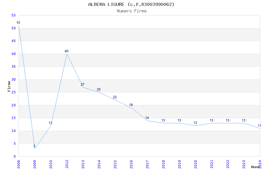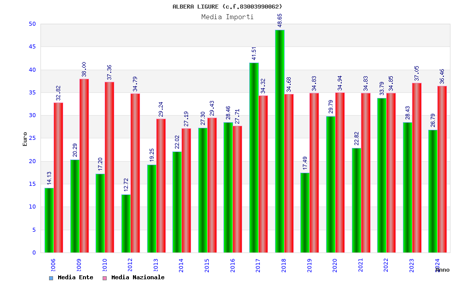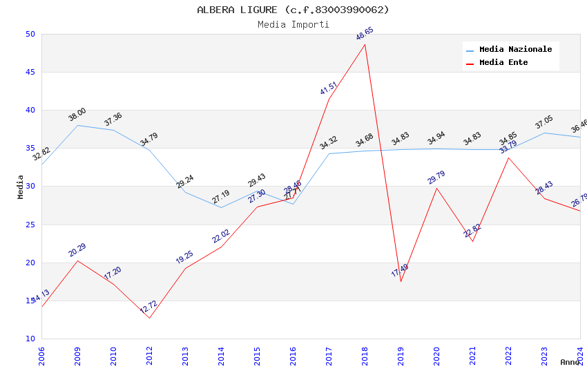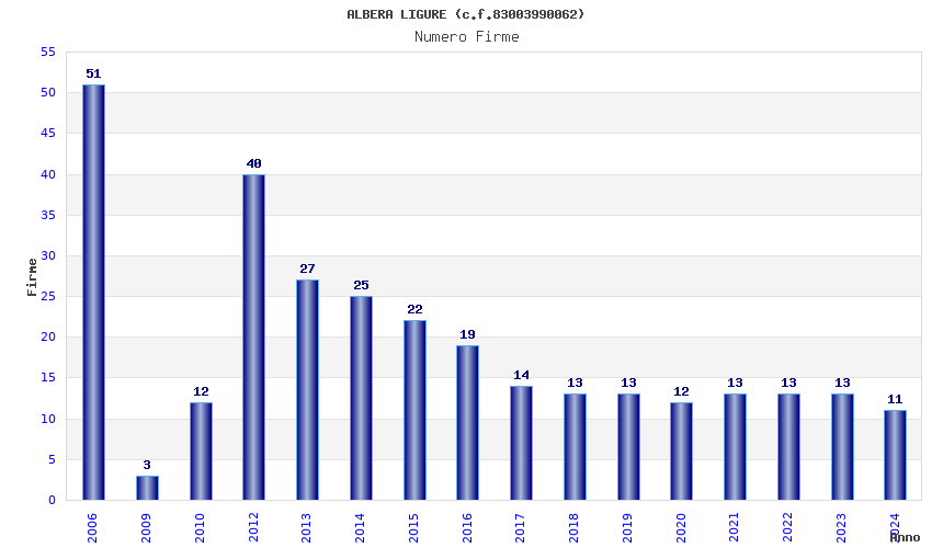 | Anno | Firme | Importi | Media | Naz. | Reg. | Prov. | Comu. |