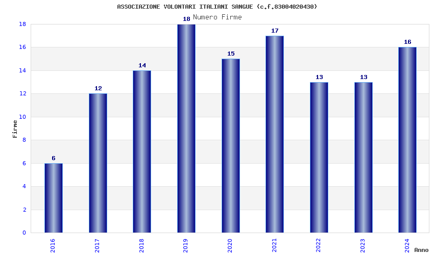 | Anno | Firme | Importi | Media | Naz. | Reg. | Prov. | Comu. |