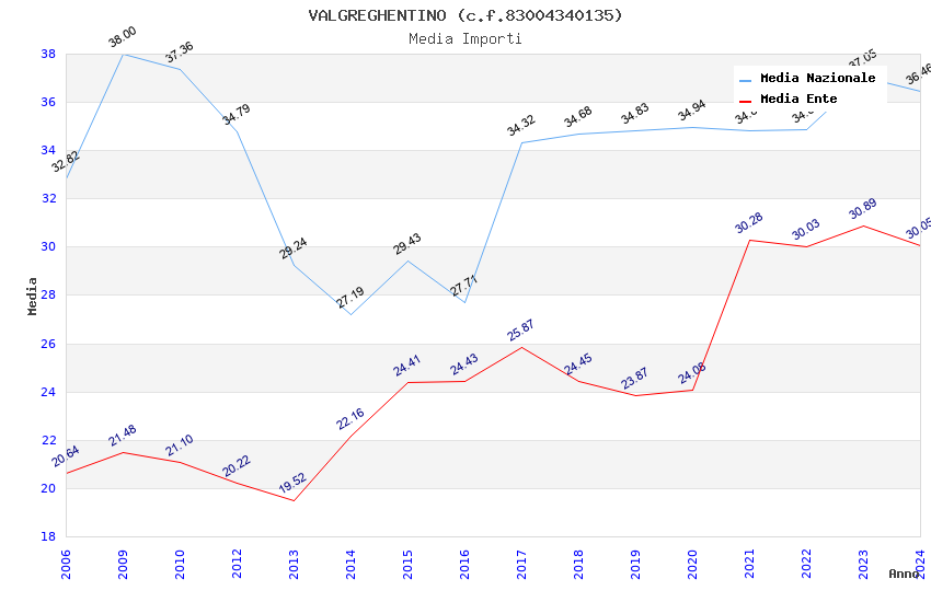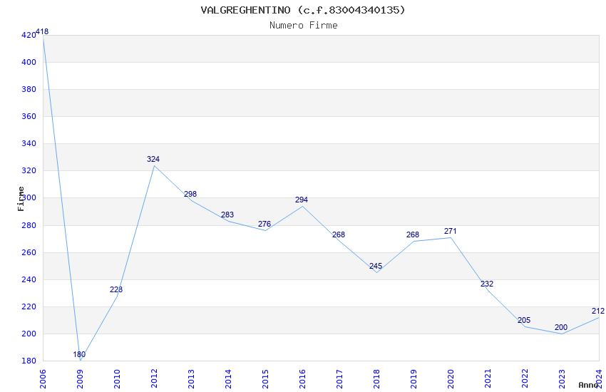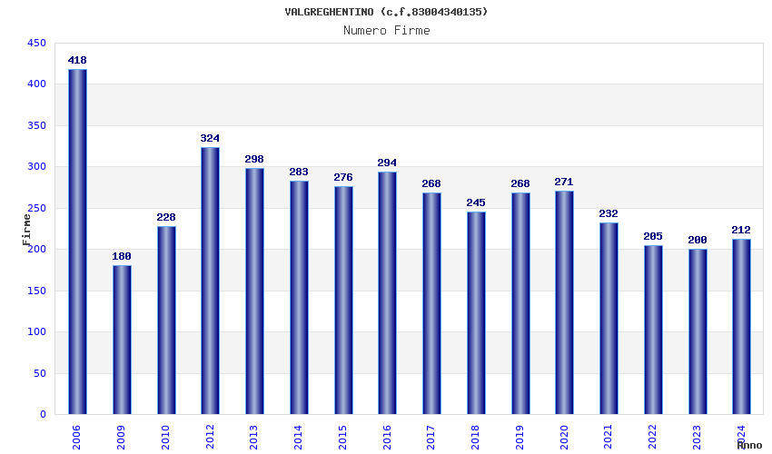 | Anno | Firme | Importi | Media | Naz. | Reg. | Prov. | Comu. |