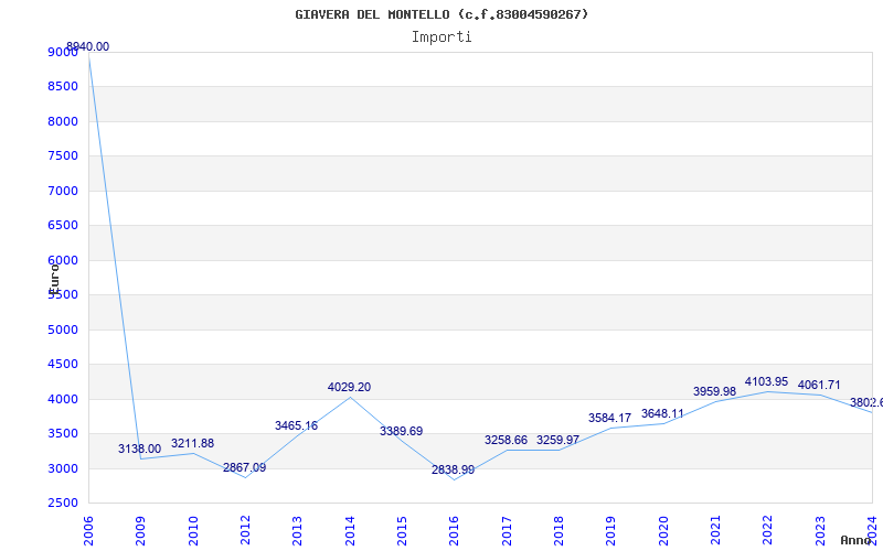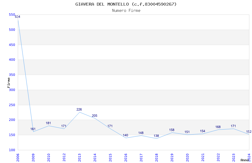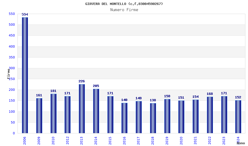 | Anno | Firme | Importi | Media | Naz. | Reg. | Prov. | Comu. |