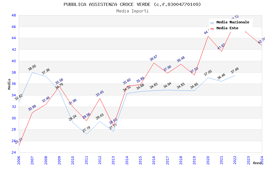 | Anno | Firme | Importi | Media | Naz. | Reg. | Prov. | Comu. |