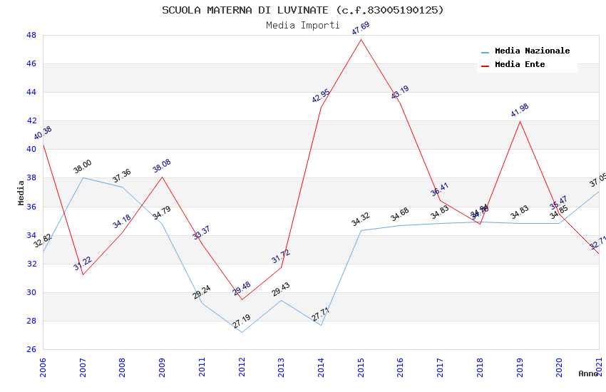 | Anno | Firme | Importi | Media | Naz. | Reg. | Prov. | Comu. |