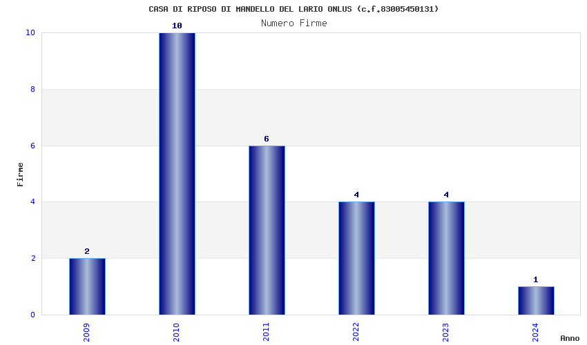 | Anno | Firme | Importi | Media | Naz. | Reg. | Prov. | Comu. |