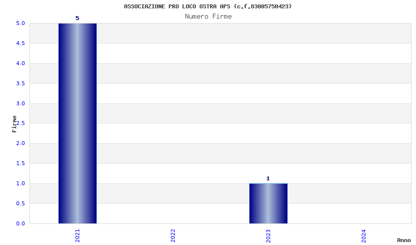| Anno | Firme | Importi | Media | Naz. | Reg. | Prov. | Comu. |