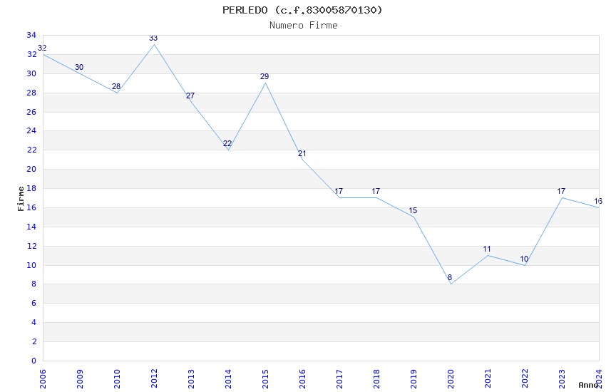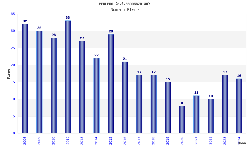 | Anno | Firme | Importi | Media | Naz. | Reg. | Prov. | Comu. |