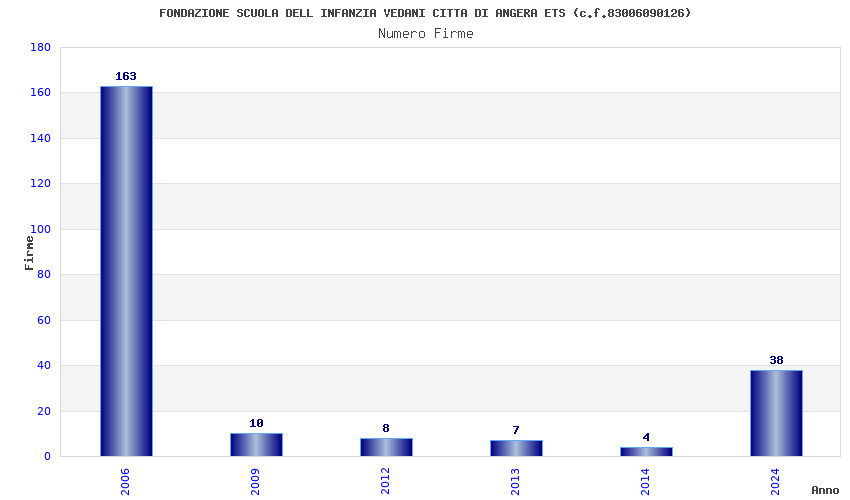 | Anno | Firme | Importi | Media | Naz. | Reg. | Prov. | Comu. |