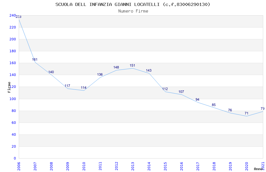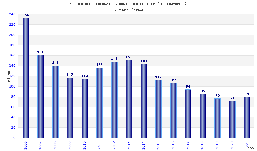 | Anno | Firme | Importi | Media | Naz. | Reg. | Prov. | Comu. |