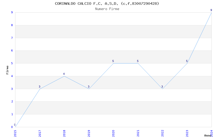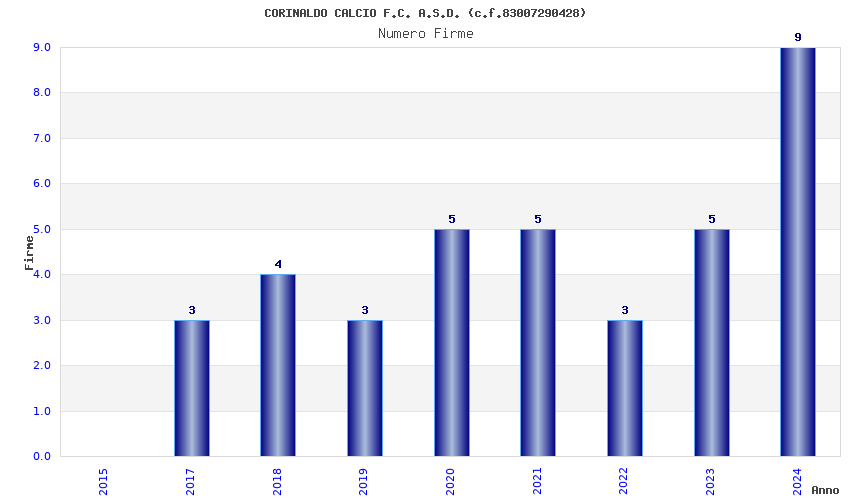 | Anno | Firme | Importi | Media | Naz. | Reg. | Prov. | Comu. |