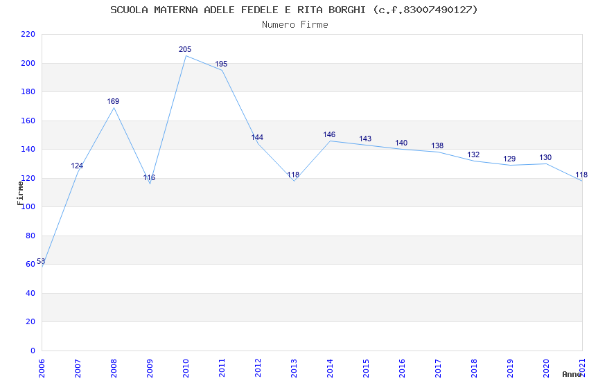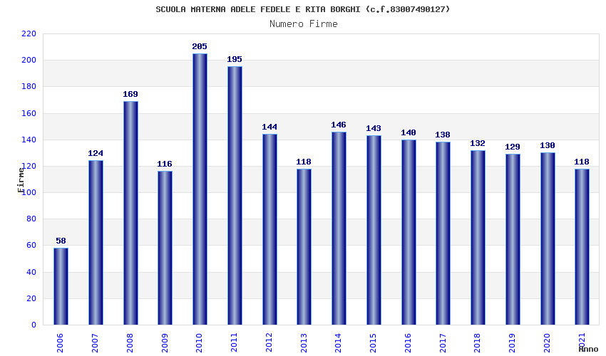 | Anno | Firme | Importi | Media | Naz. | Reg. | Prov. | Comu. |