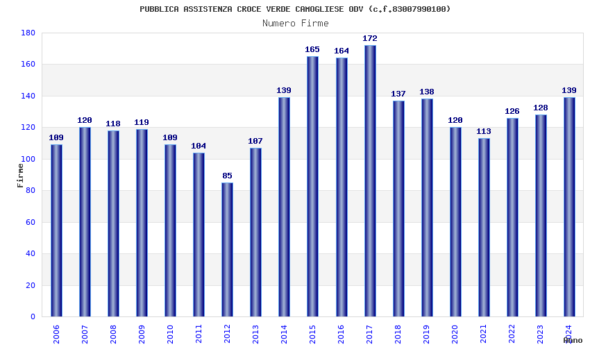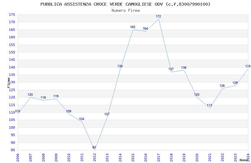 | 2017 | 172 | 5.929,79 | 34,48 | 9.300 | 261 | 185 | 3 |