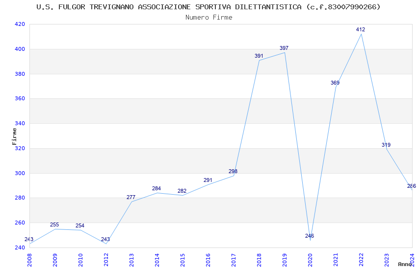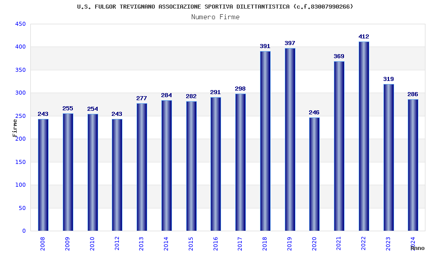 | Anno | Firme | Importi | Media | Naz. | Reg. | Prov. | Comu. |