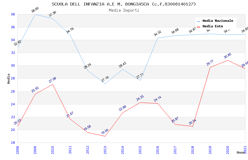 | Anno | Firme | Importi | Media | Naz. | Reg. | Prov. | Comu. |