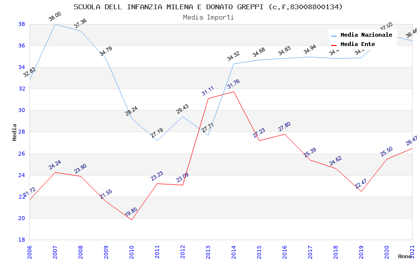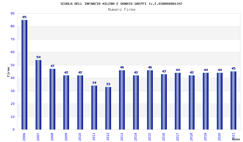 | Anno | Firme | Importi | Media | Naz. | Reg. | Prov. | Comu. |