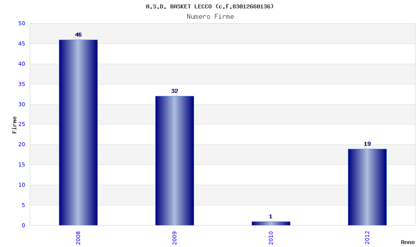 | Anno | Firme | Importi | Media | Naz. | Reg. | Prov. | Comu. |