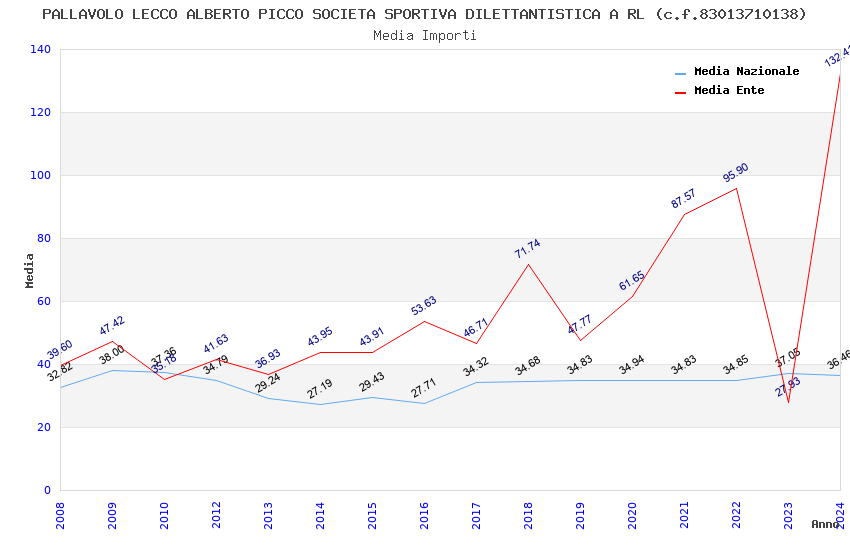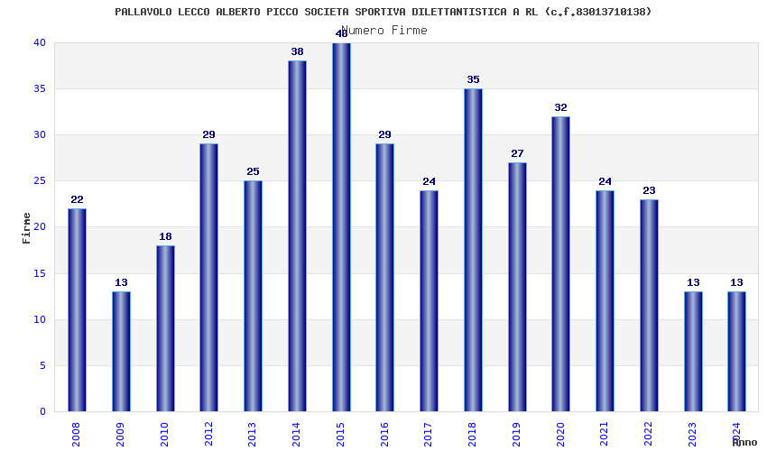 | Anno | Firme | Importi | Media | Naz. | Reg. | Prov. | Comu. |