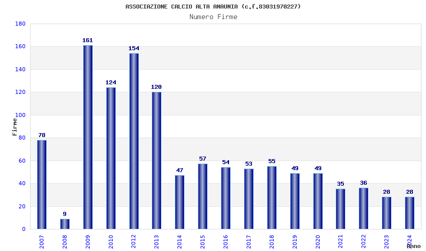| 2009 | 161 | 5.958,30 | 37,01 | 7.553 | 147 | 83 | 1 |