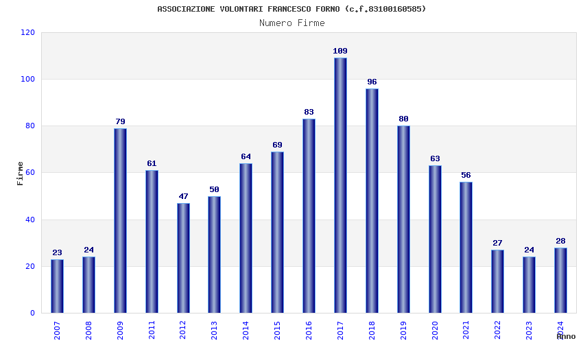 | 2023 | 24 | 1.172,30 | 48,85 | 33.298 | 3.169 | 2.597 | 28 |