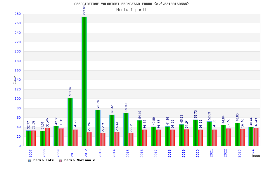 | Anno | Firme | Importi | Media | Naz. | Reg. | Prov. | Comu. |