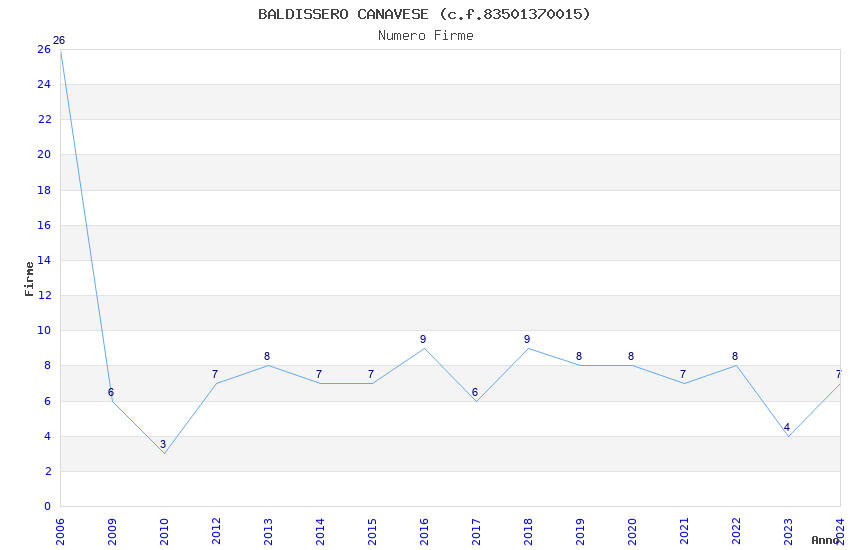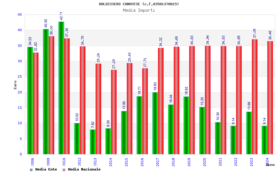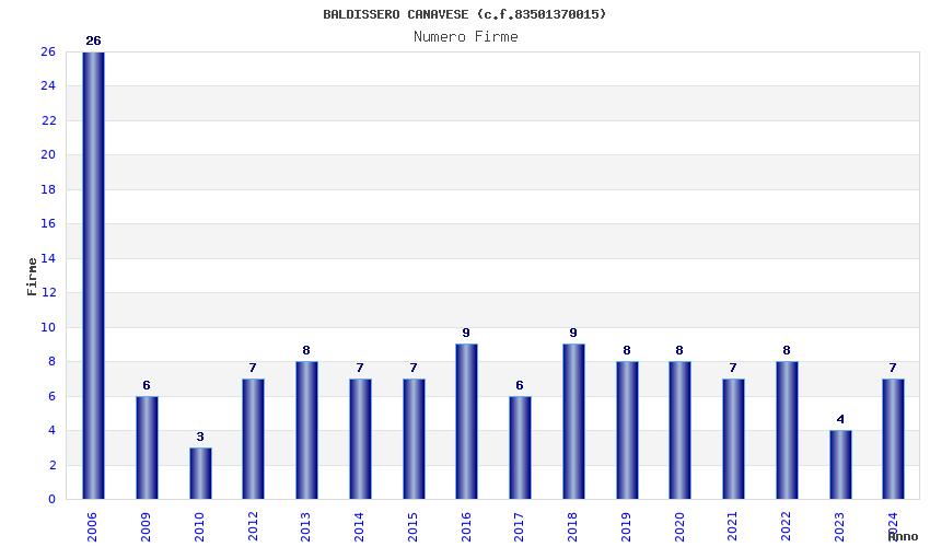 | Anno | Firme | Importi | Media | Naz. | Reg. | Prov. | Comu. |
