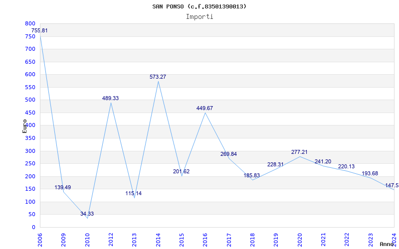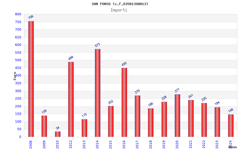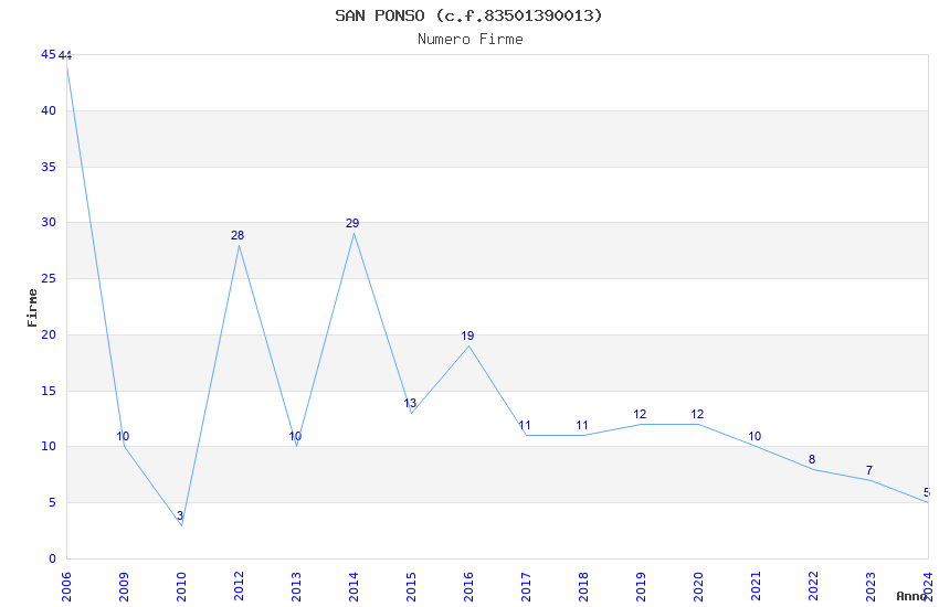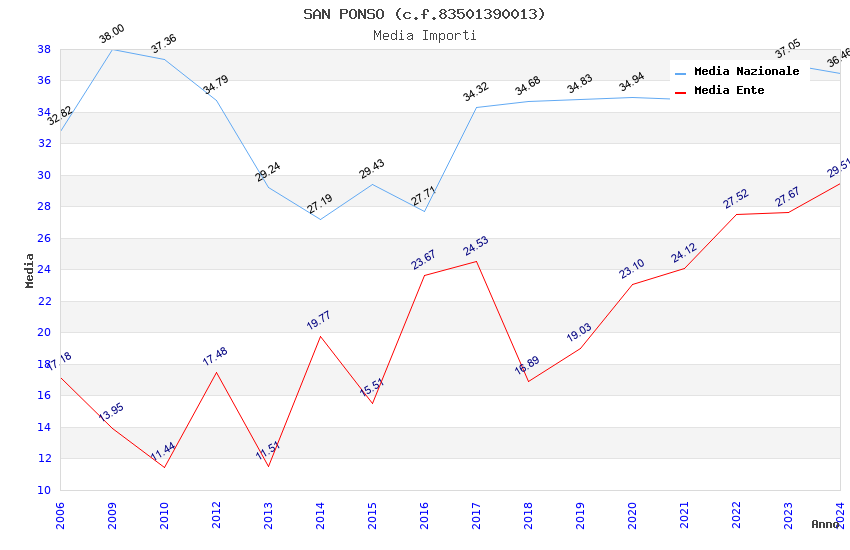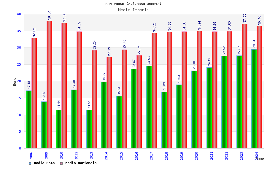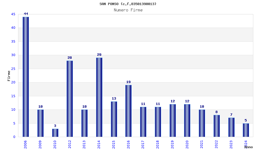 | Anno | Firme | Importi | Media | Naz. | Reg. | Prov. | Comu. |