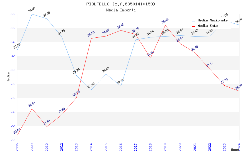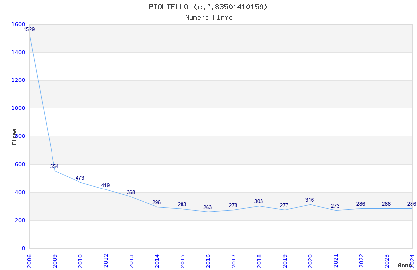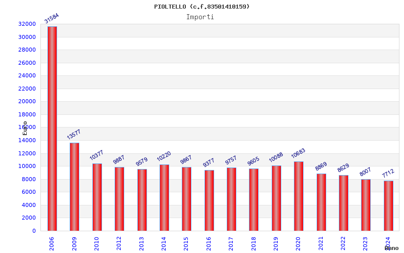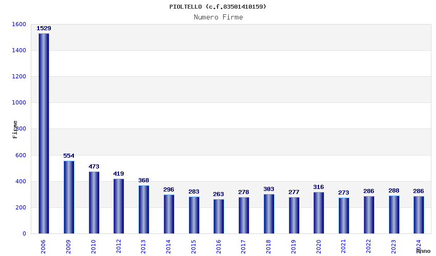 | Anno | Firme | Importi | Media | Naz. | Reg. | Prov. | Comu. |