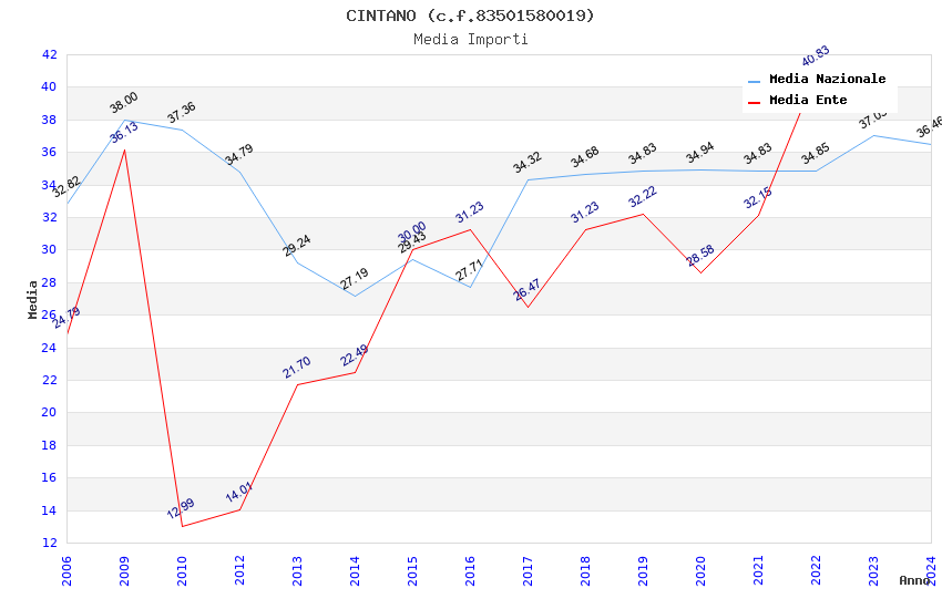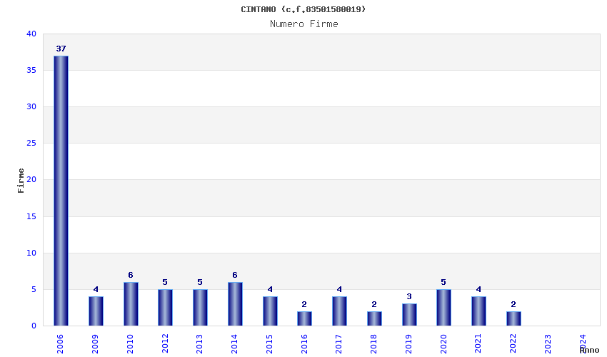 | Anno | Firme | Importi | Media | Naz. | Reg. | Prov. | Comu. |