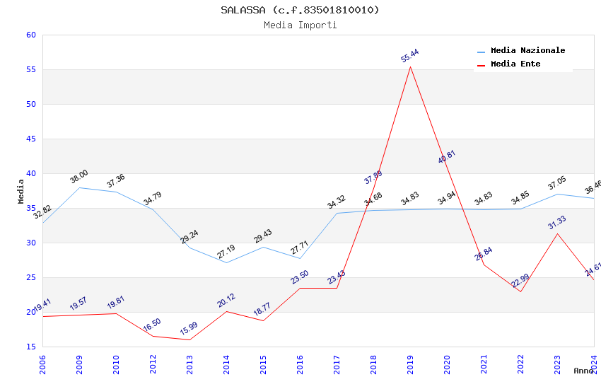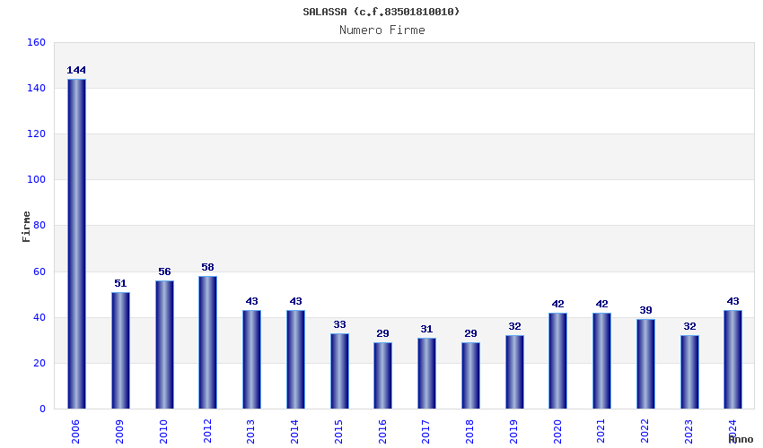 | Anno | Firme | Importi | Media | Naz. | Reg. | Prov. | Comu. |