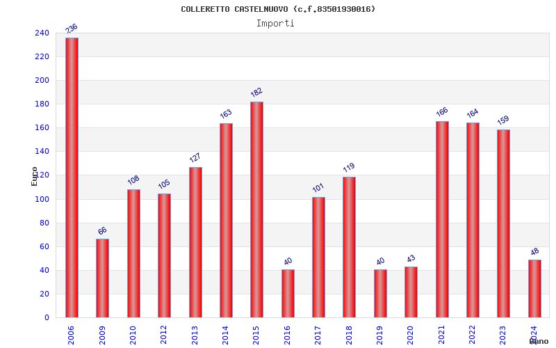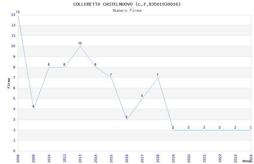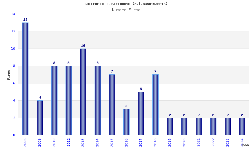 | Anno | Firme | Importi | Media | Naz. | Reg. | Prov. | Comu. |
