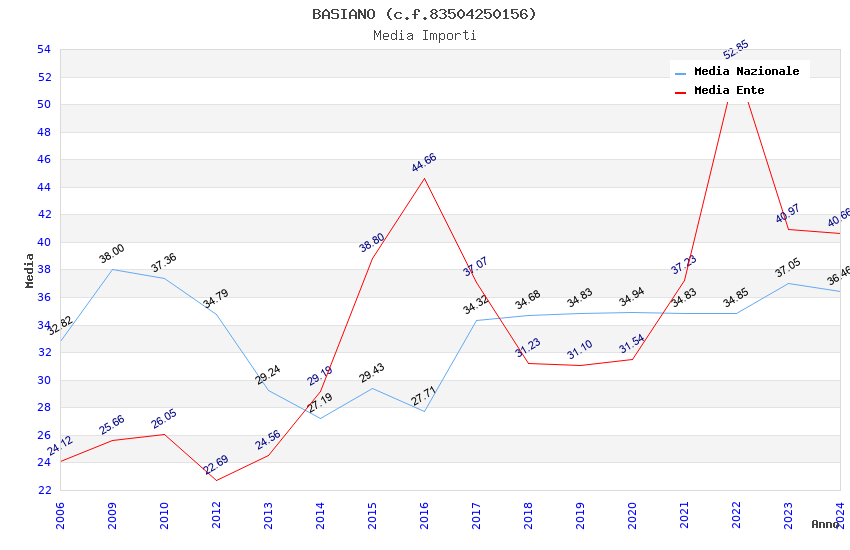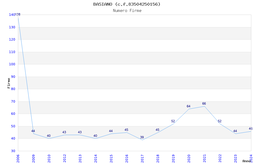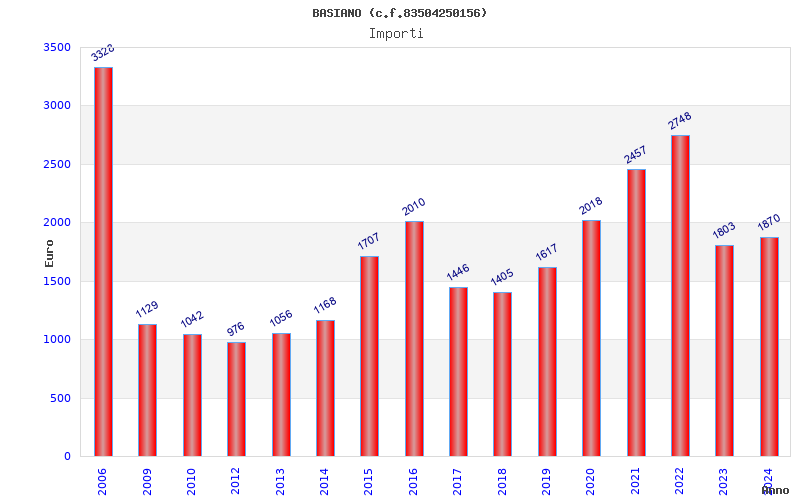 | Anno | Firme | Importi | Media | Naz. | Reg. | Prov. | Comu. |