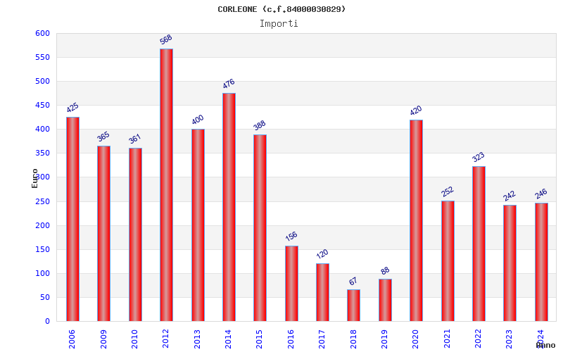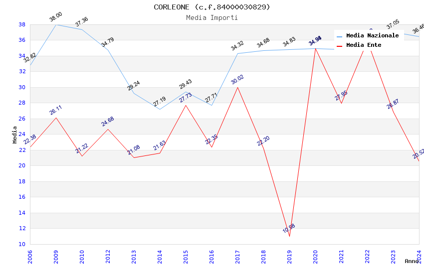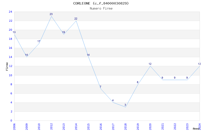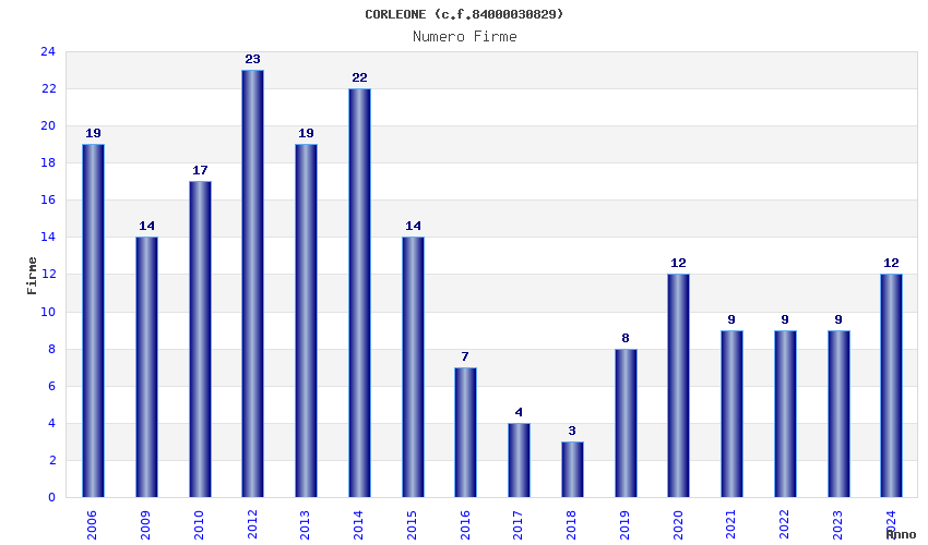 | Anno | Firme | Importi | Media | Naz. | Reg. | Prov. | Comu. |