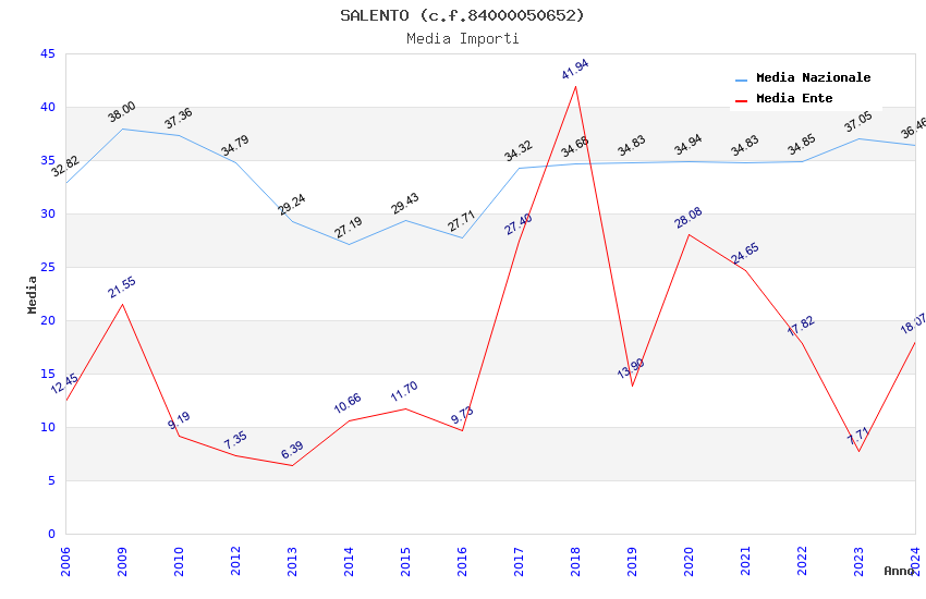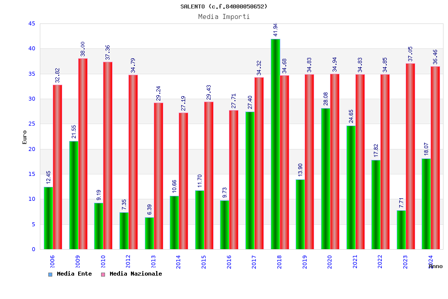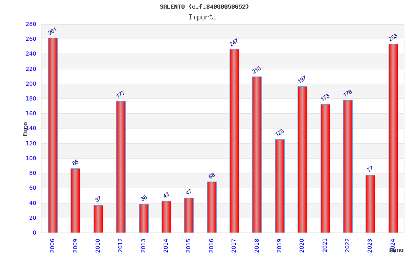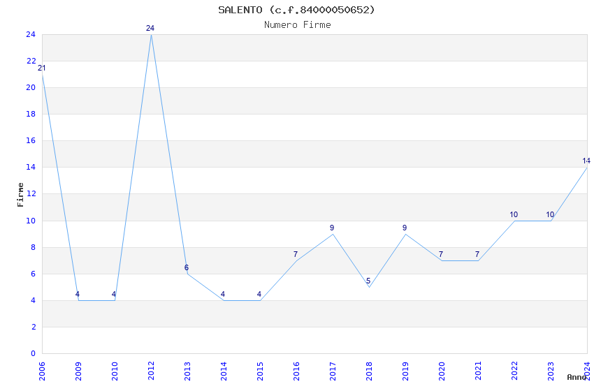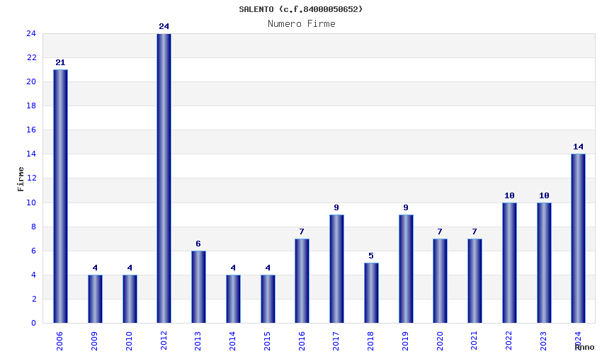 | Anno | Firme | Importi | Media | Naz. | Reg. | Prov. | Comu. |