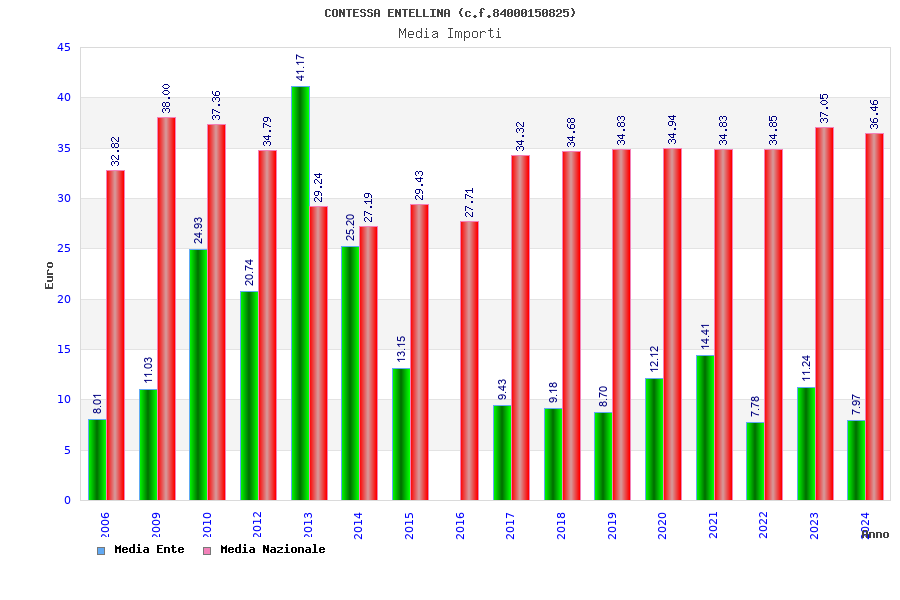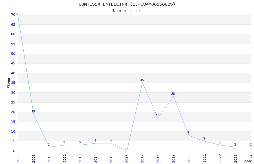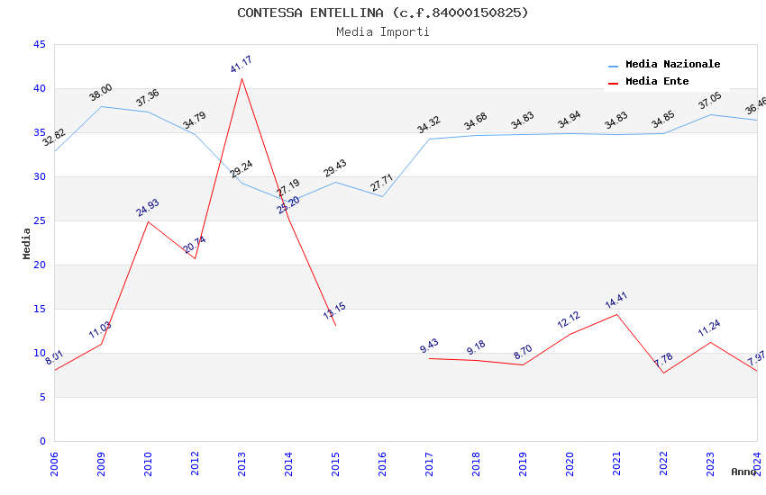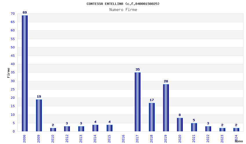 | Anno | Firme | Importi | Media | Naz. | Reg. | Prov. | Comu. |