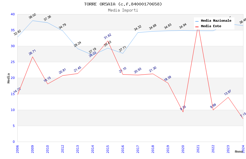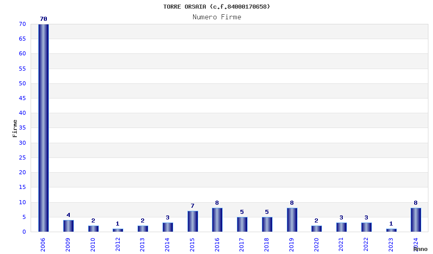 | Anno | Firme | Importi | Media | Naz. | Reg. | Prov. | Comu. |