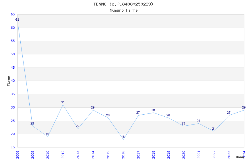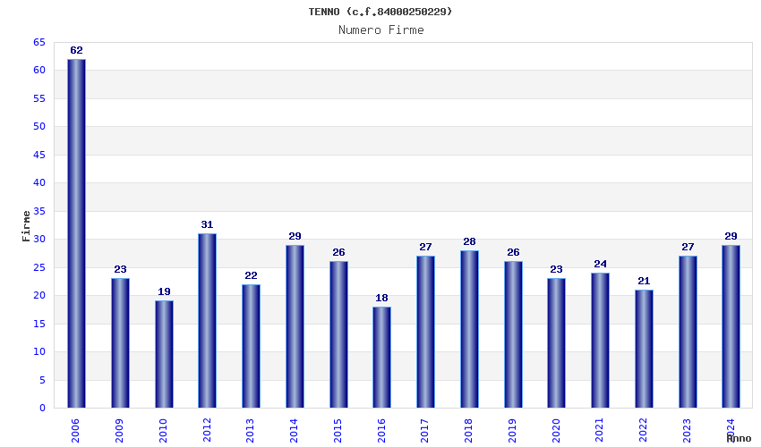 | Anno | Firme | Importi | Media | Naz. | Reg. | Prov. | Comu. |