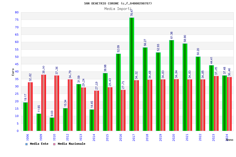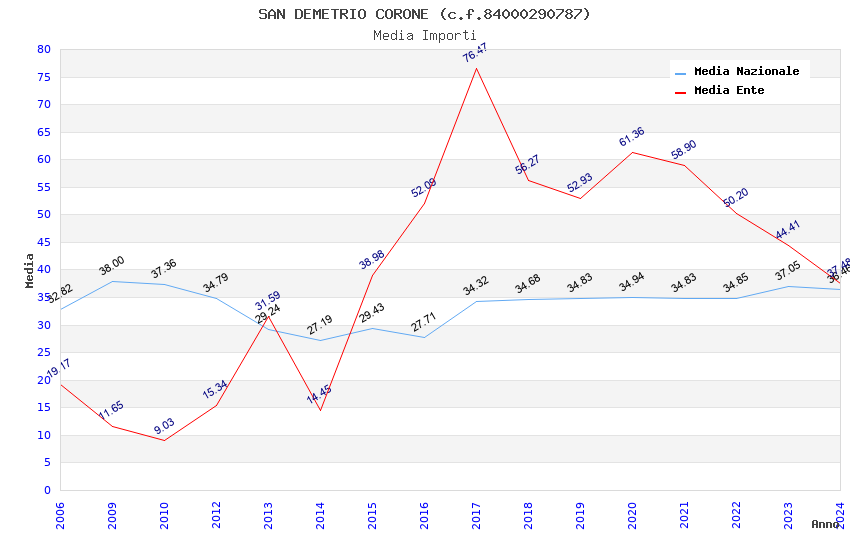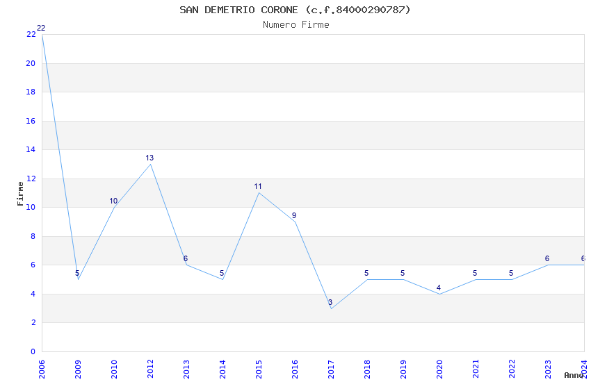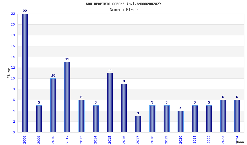 | Anno | Firme | Importi | Media | Naz. | Reg. | Prov. | Comu. |