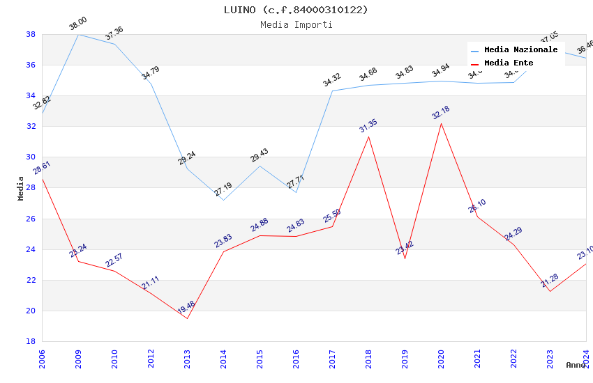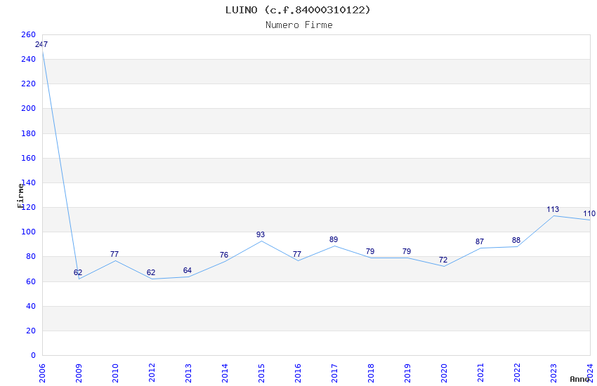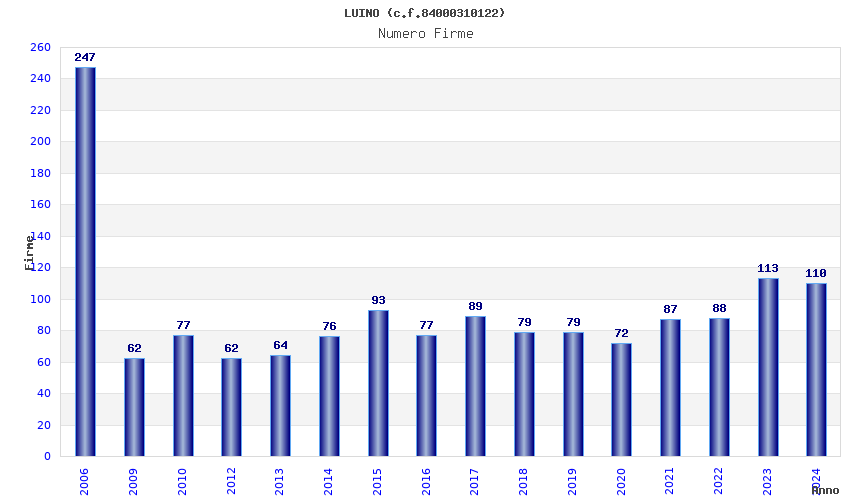 | Anno | Firme | Importi | Media | Naz. | Reg. | Prov. | Comu. |