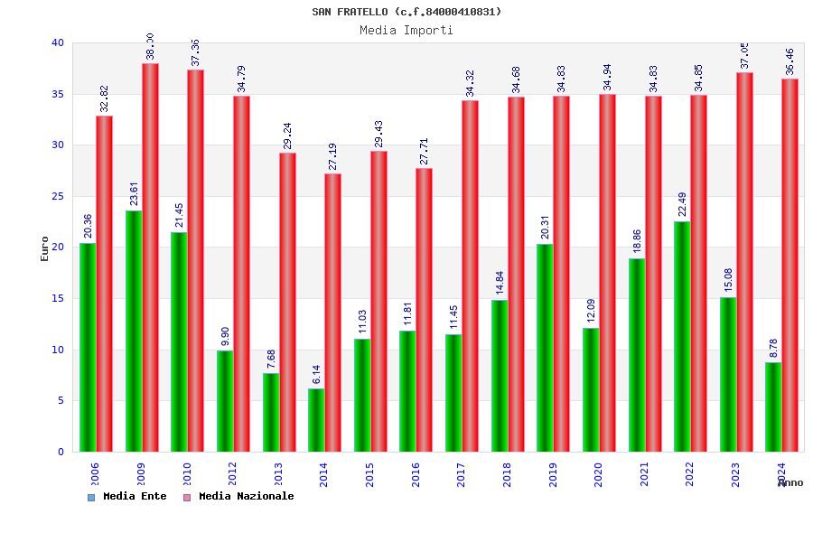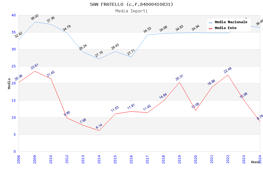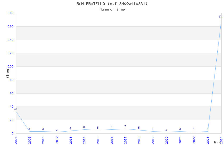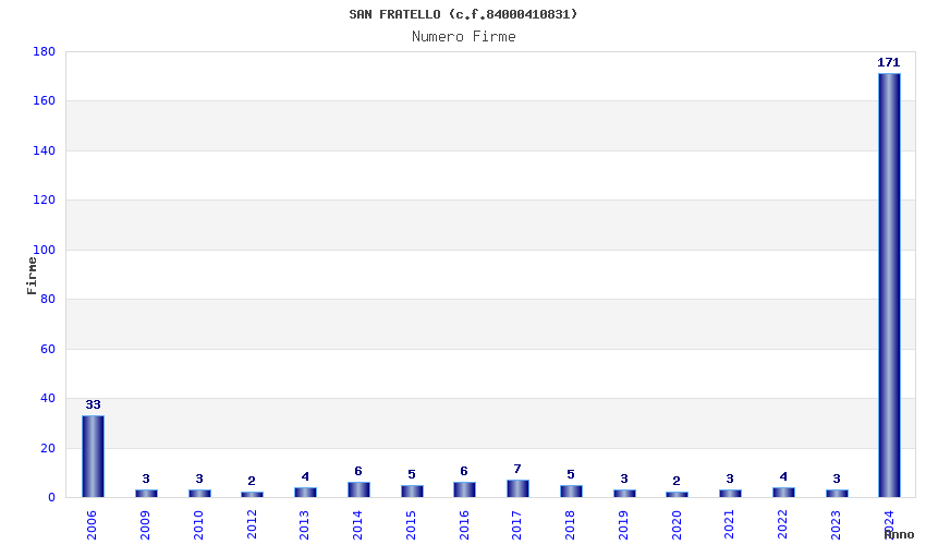 | Anno | Firme | Importi | Media | Naz. | Reg. | Prov. | Comu. |
