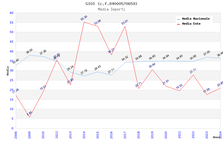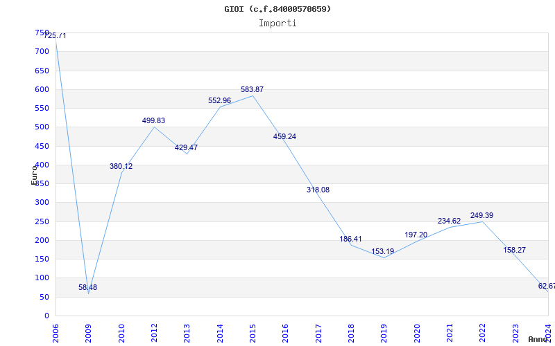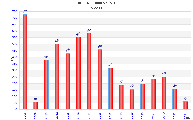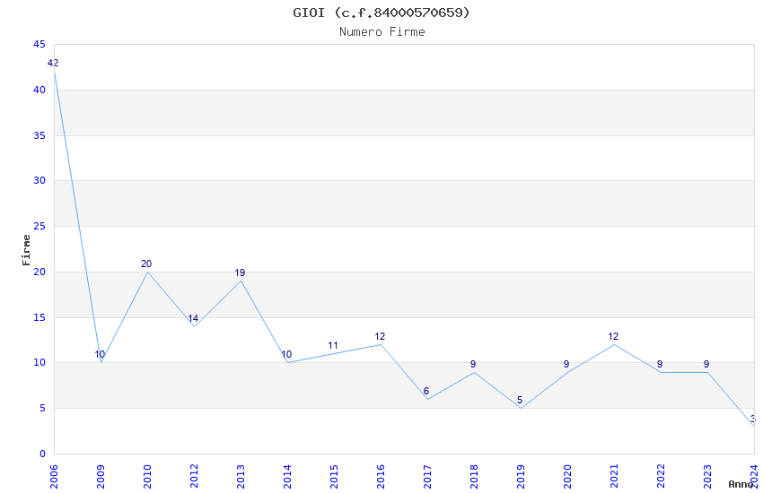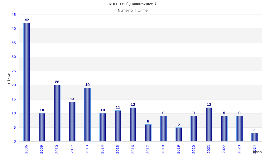 | Anno | Firme | Importi | Media | Naz. | Reg. | Prov. | Comu. |
