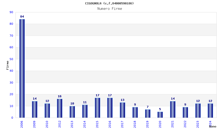 | Anno | Firme | Importi | Media | Naz. | Reg. | Prov. | Comu. |