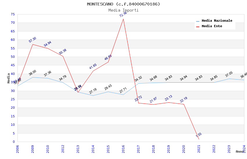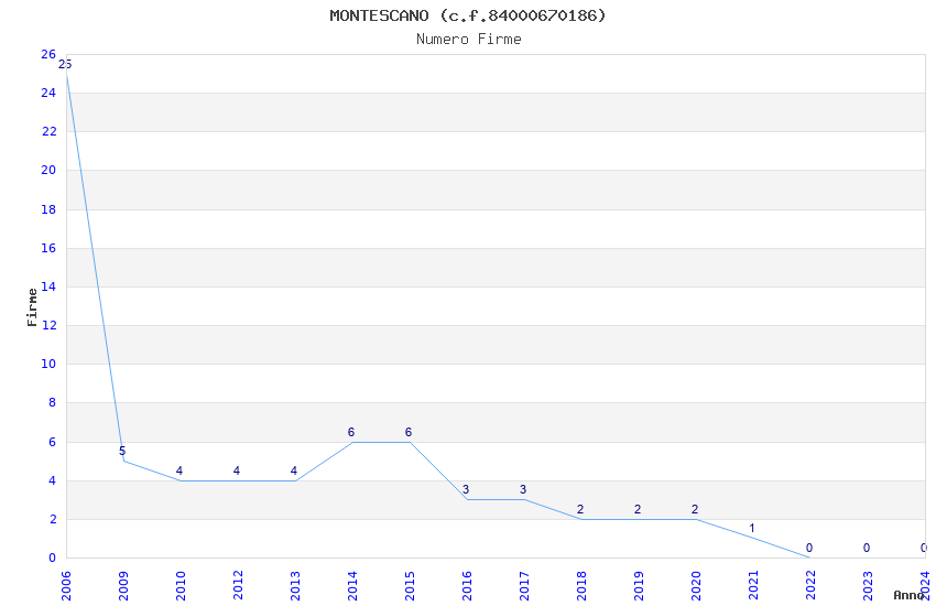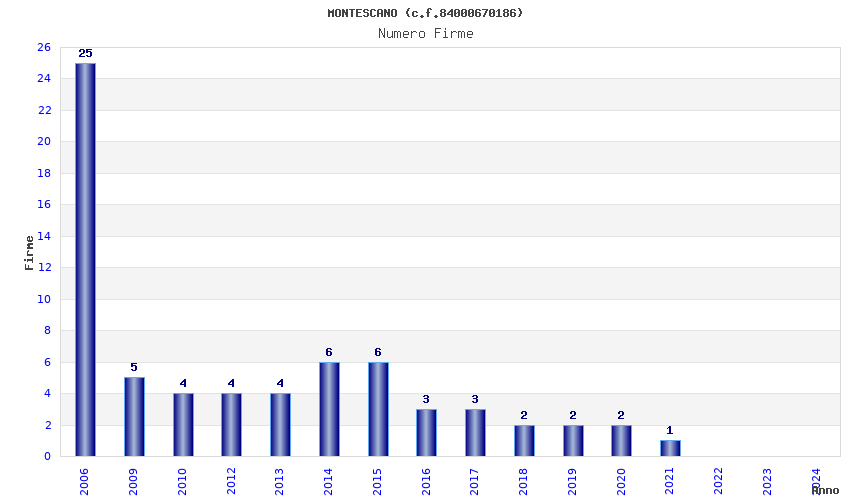 | Anno | Firme | Importi | Media | Naz. | Reg. | Prov. | Comu. |