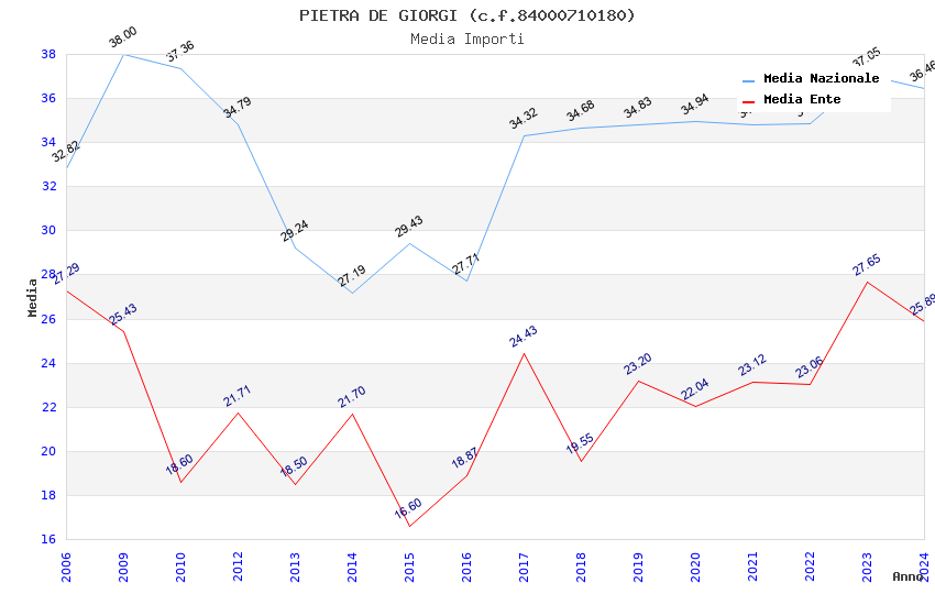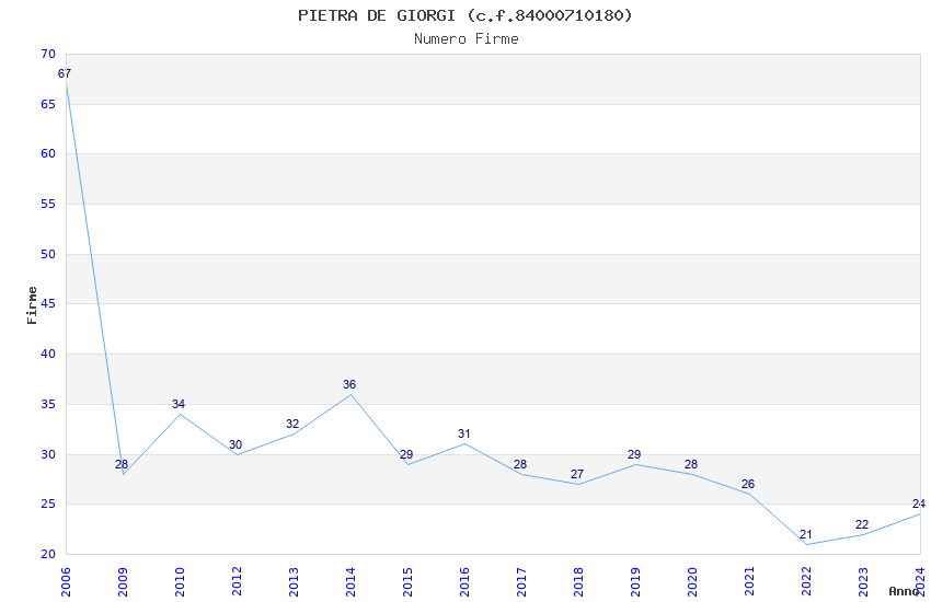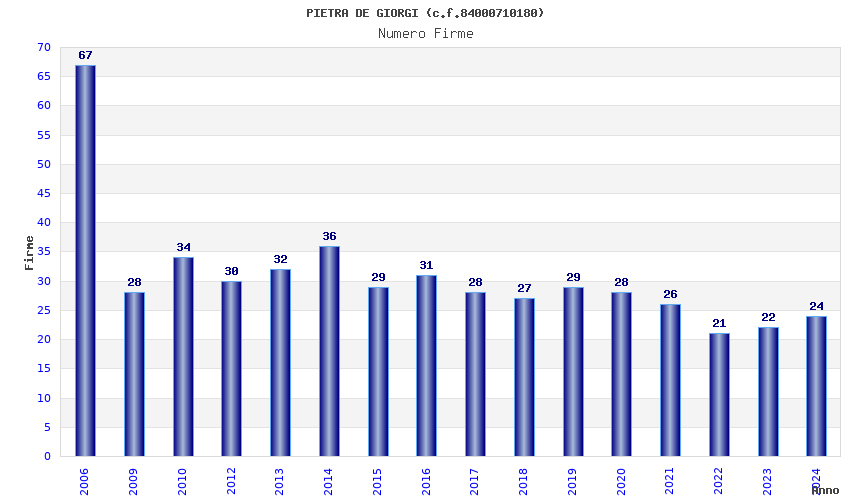 | Anno | Firme | Importi | Media | Naz. | Reg. | Prov. | Comu. |