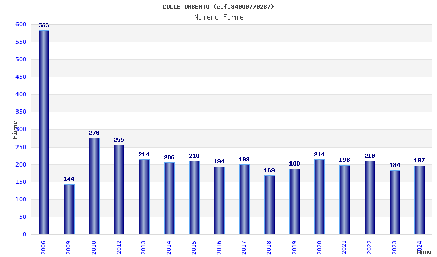 Anno Firme Importi Media Naz. Reg. Prov. Comu.