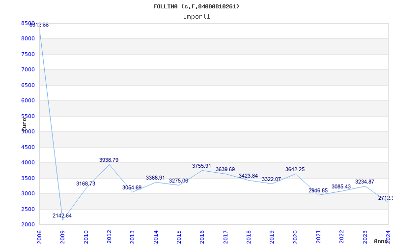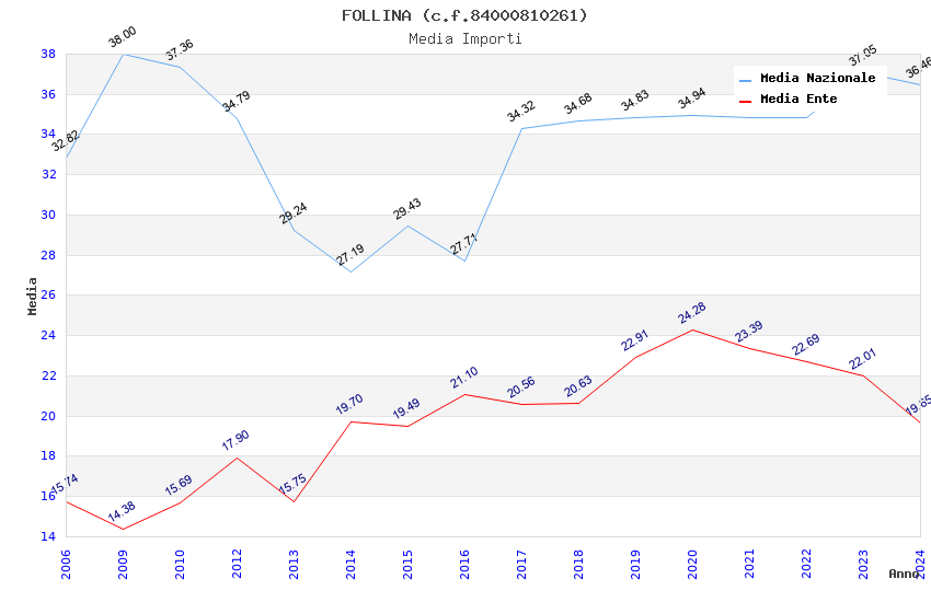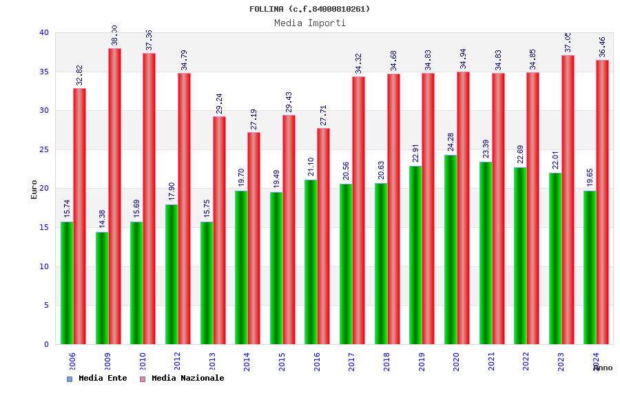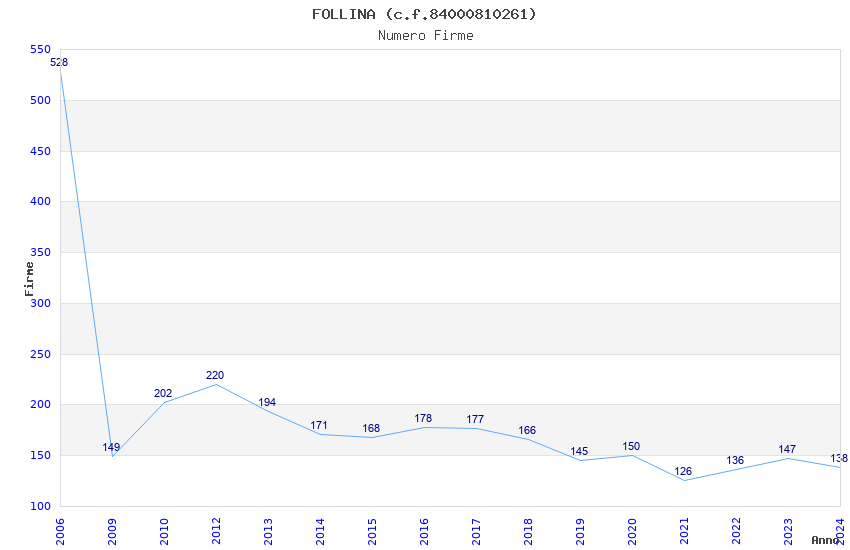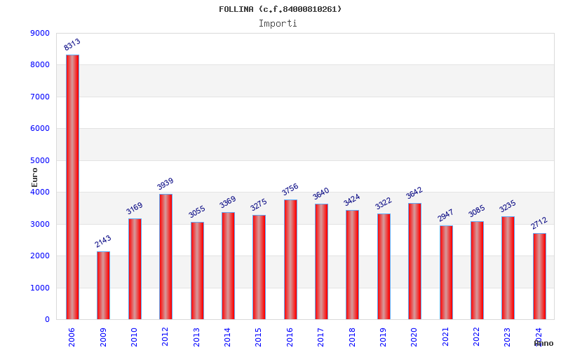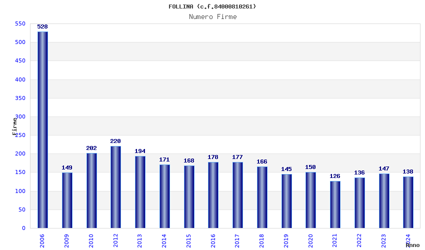 | Anno | Firme | Importi | Media | Naz. | Reg. | Prov. | Comu. |