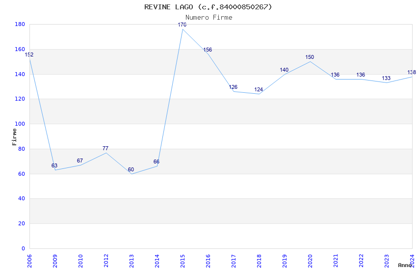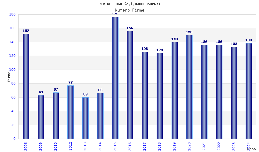 | Anno | Firme | Importi | Media | Naz. | Reg. | Prov. | Comu. |