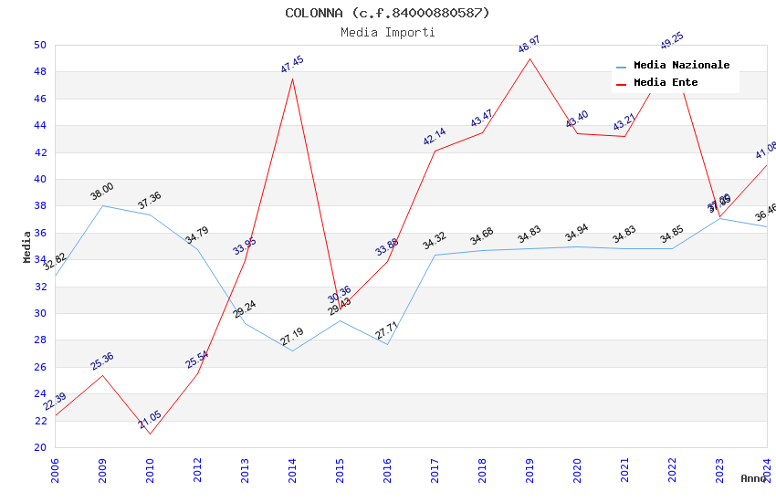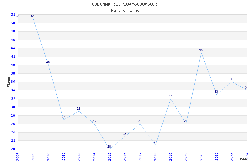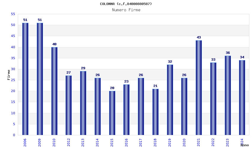 Anno Firme Importi Media Naz. Reg. Prov. Comu.
